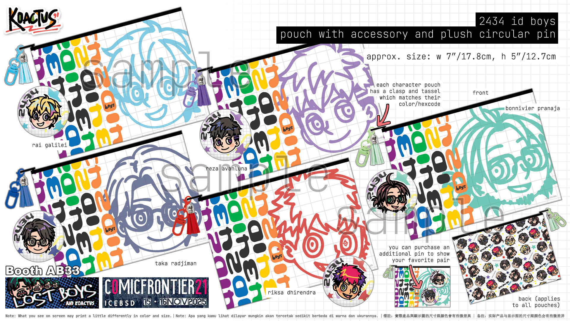 [tentative] some items that will be later be included in the catalogue (such as pins, fans, and stickers) might not have a preorder period and will only be available for purchase on site.
